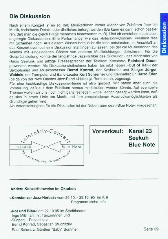 Diese Seite zum Lesen vergrößern ò Musik Ebert, Kanal 23, Seekuh, Blue Note, Harry Harald Keck, Thomas Bonet, Franz Josef Stiele-Werdermann, Gerd Magerl, Magerl-Litho, Druckerei Otto Dr. Horst Eickmeyer, Stadt Konstanz, Puscha Elisabeth Fröhlich, Holger Braun, Reinhard Daum, Pit Drefahl, Michael Zobel Medienberichte 1 vom Interaktiv-Concert Medienberichte 2 vom Interaktiv-Concert Bilder vom Interaktiv-Concert Galerie Grashey, Creavision HAAG Kreuzlingen, RAIL Systems P.A. SERVICE OUT JAZZ, Repro Magerl, Klangmühle K. Adam Reformhaus Fecht, Gradmann, AOK, Out Jazz, Heliocentric Space, Speedfire, Akropolis, RAIL, Zum Salzbüchsle, Riedle Zoobedarf, Medienberichte 1 vom Interaktiv-Concert Medienberichte 2 vom Interaktiv-Concert Bilder vom Interaktiv-Concert Südkurier, Afrikana Zürich, Cream, Jimmy Hendrix, Ten Years After, King Crimson, Charlie Parker, John Coltrane, Wolfgang Peter, Fritz Frieder Senn, Jack Lear, Peter Blacky Schwarz, Peter Bartotz, Rainer Fahr, Rolf Ditting, Paul Dummel, Bernd Drefahl, Horst Schaub Axel Schelitzki, Norbert Stemmer, Karl-Heinz Backes, Klaus Eckert, Fred Sergant, Karl-Heinz Butzengeiger, Wolfgang Maurer, Lawrence Carls, 1. Hohentwiel Jazz-Festival, 1. Konstanzer Jazz-Tage, Uni-Fest 1975 Ilse Müller, CTM, Roel Cord, RAIL, Christian Leibel, Wolfgang Windisch, Hannes Eitner, Andy Haas, Alex Friedrich, Donald G. Wagner, Ulf Burkhardt, Sula Läubli, Marcel Warthmann